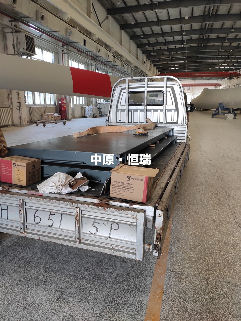 采購背景:洛陽雙瑞風(fēng)電葉片有限公司是中船重工第七二五研究所(雙瑞科技集團(tuán))下屬的控股公司。公司主要從事風(fēng)力發(fā)電葉片、機(jī)艙罩、特種非金屬制品的研制、生產(chǎn)、銷售和服務(wù)。由于生產(chǎn)需要,在中原恒瑞地磅廠定制了1.24mx2.9m定額15噸電子地磅,現(xiàn)電子地磅已安裝完成并投入使用。