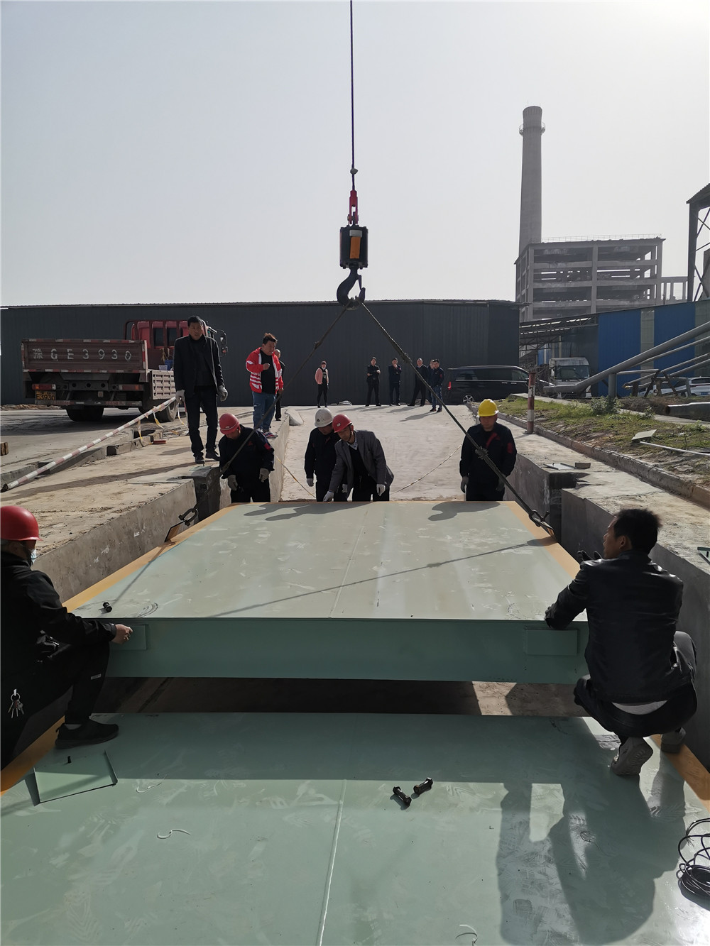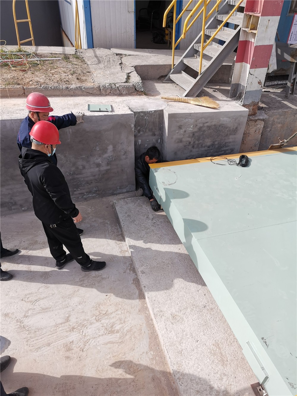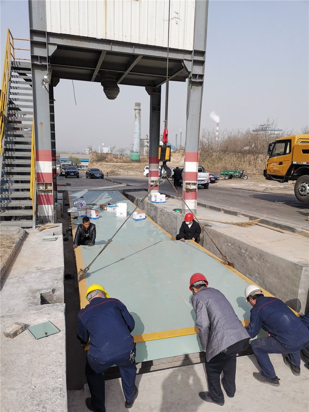 鞏義新世紀(jì)建工下料倉(cāng)150噸地磅施工案例
