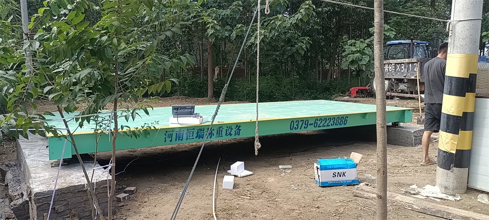 采購背景:商丘柘城浩豐種植合作社,主營范圍糧食、水果等各種農(nóng)作物的種植與銷售。為了方便農(nóng)作物的稱重計量,聯(lián)系到我公司訂購了一臺2.5x6m定額30噸電子地磅,地磅結(jié)構(gòu)由一節(jié)2.5x6m組成,秤臺底部貫穿5道250mmU型梁,面板厚8mm,秤體結(jié)實(shí)、耐用,電器部分配備了QS-30T傳感器,穩(wěn)定性強(qiáng),XK3118K9柯力稱重儀表一臺,電子地磅整體準(zhǔn)確度高,誤差小。目前地磅已安裝完成并投入使用。